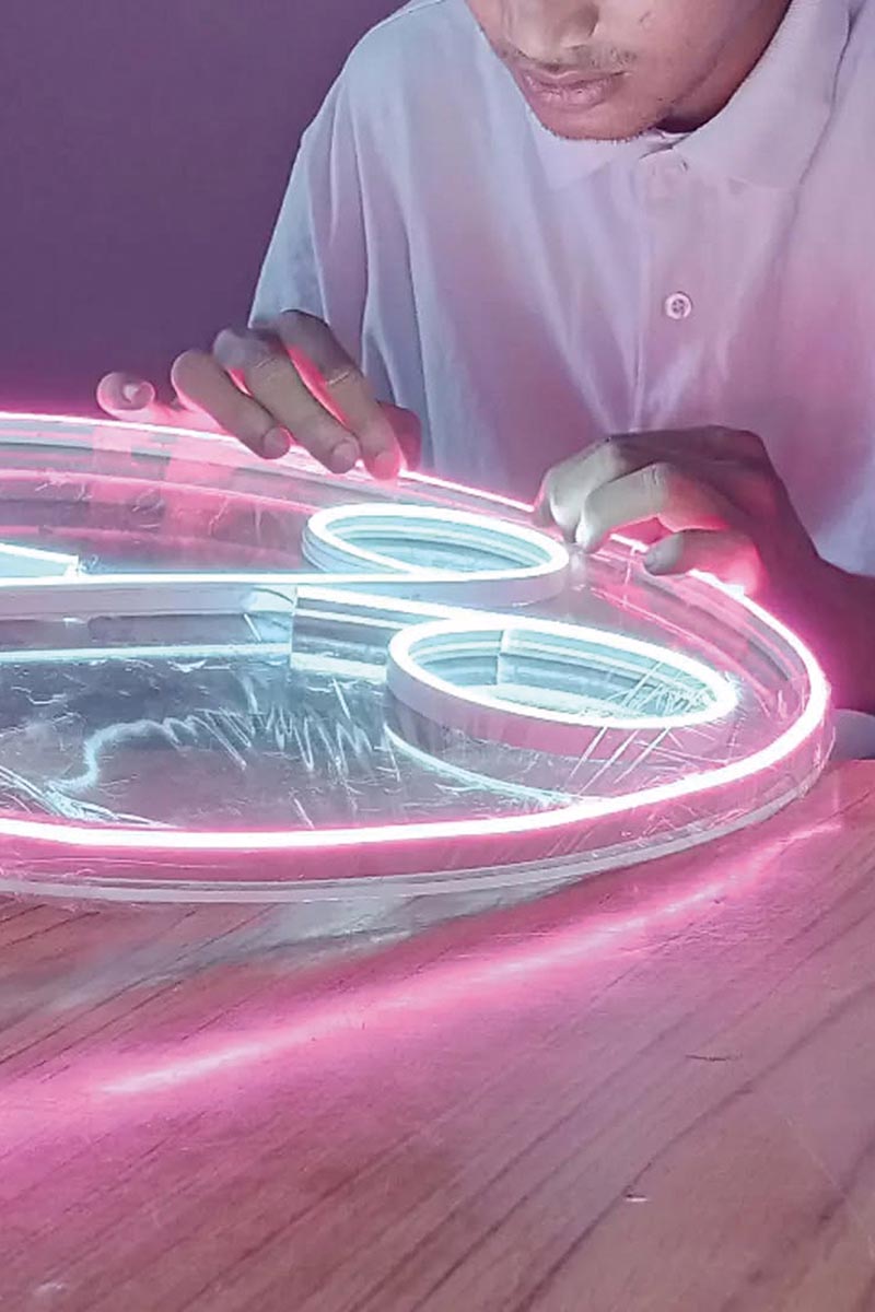 Though his Instagram is the shop window, Nabeel’s real magic lies in translating emotion into light. He becomes a co-designer, listening, sketching, fine-tuning – and then bringing the sign into luminous life.