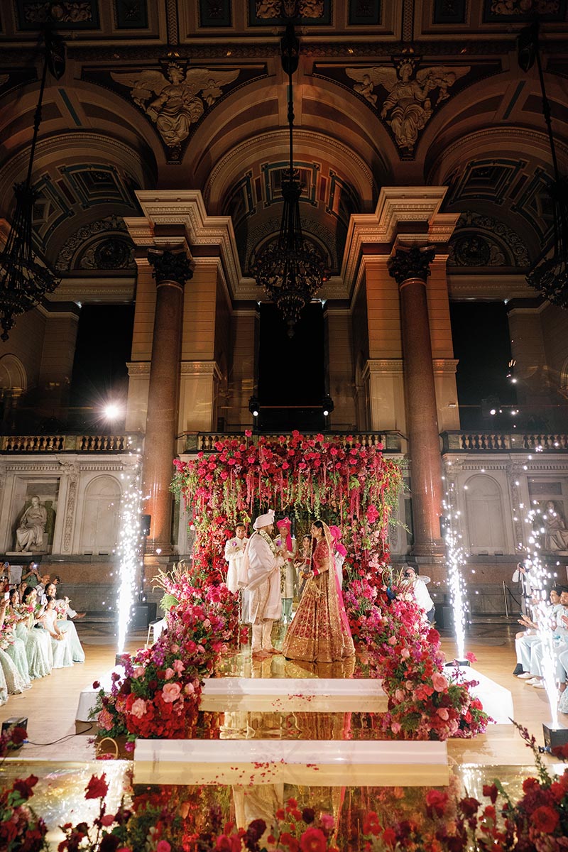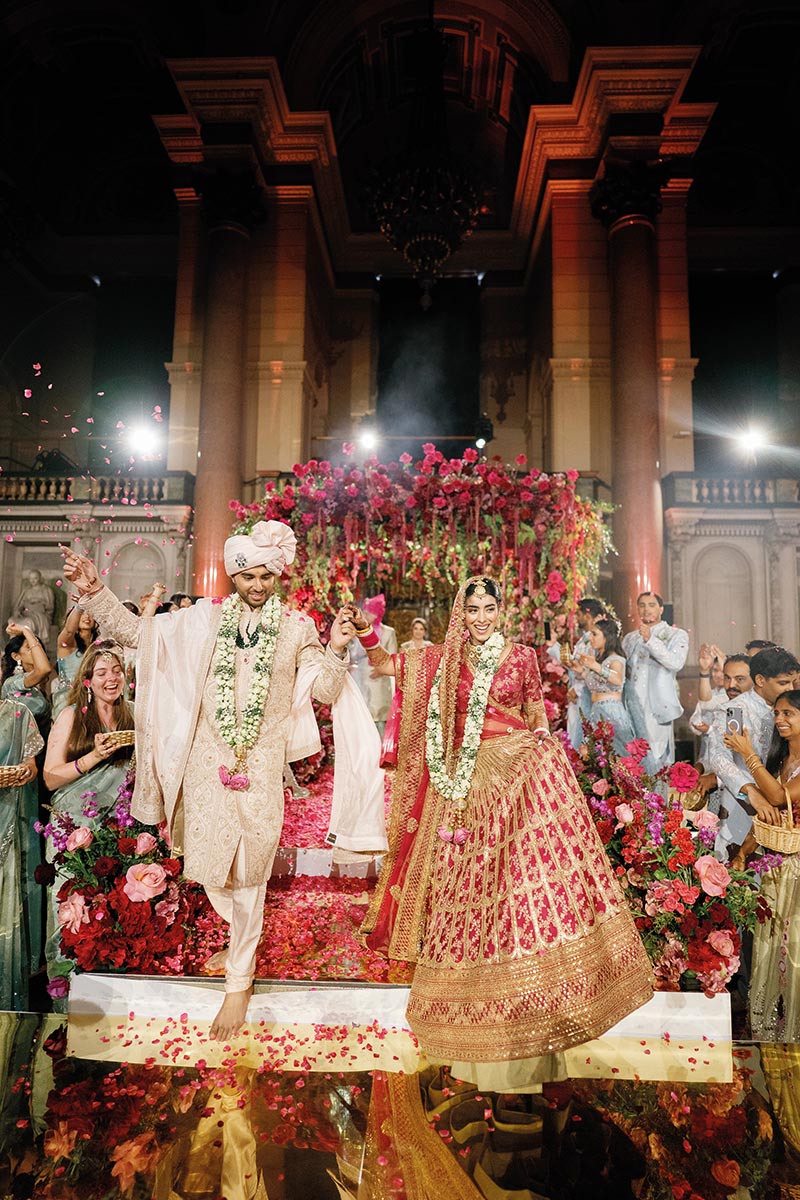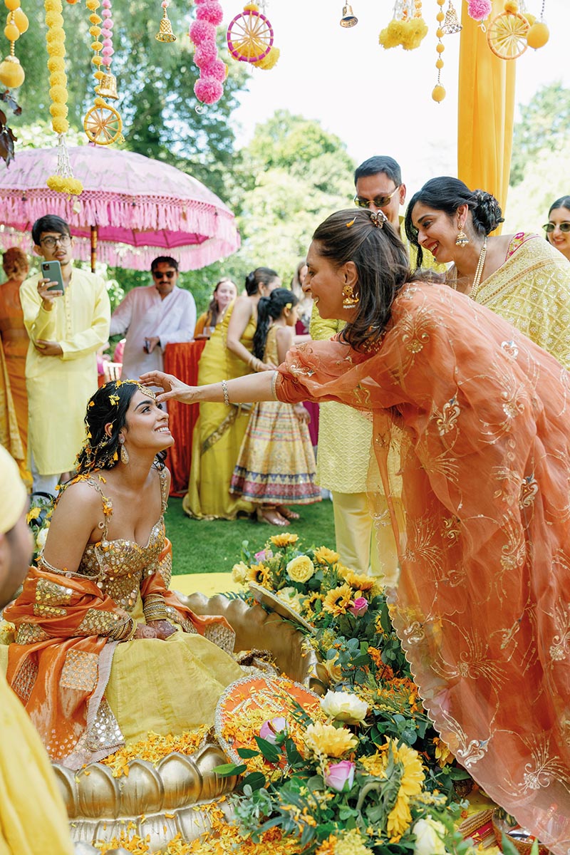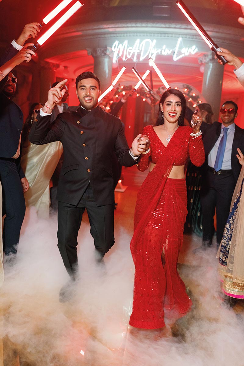 Liverpool is so special to me because it’s where I grew up, and it also happens to be home to some of the most magnificent architecture in England. Our Haldi was held at my family home on the Wirral. We wanted it to feel intimate and fun, which is why we named the event ‘You can’t spell radiant without Rad.’ It was the perfect way to begin the celebrations, surrounded by our closest loved ones in such a personal setting.